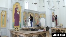 В этом году храм облицевали и стали расписывать. Пока пишут канонические фрески. Иконописцы обещают, что на стенах будут изображены все погибшие в бесланской школе.