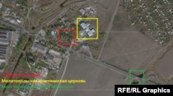 На самом деле, Федоров ошибся в геолокации удара всего на несколько десятков метров. Современный комплекс зданий с концертным залом, в котором до войны размещалась бывшая "Церковь Новое поколение", затем переименованная в "Мелитопольскую Христианскую Церковь", действительно находится совсем рядом с "Привалом охотника".