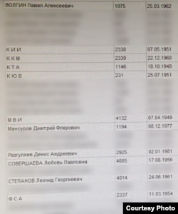 "Сокращения в списке – инициалы. Например, К Ю В – "Ковальчук Юрий Валентинович", Ф С А – "Фурсенко Сергей Александрович" и так далее. Это в основном учредители [клиники]. Там, где сокращения, – особенно хотели засекретить. Их карты были закрыты уже в тот момент, когда я пришел туда. Номера их карт говорят о том, что они стали клиентами клиники одними из первых. Я сфотографировал этот список, потому что это был "красный" уровень топов. У нас была цветовая идентификация: красный – самый высокий уровень випов, дальше был розовый, голубой и так далее", – говорит источник Радио Свобода.