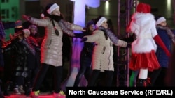 На главной площади Махачкалы установили 35 метровую елку, организованы развлекательные мероприятия как для детей, так и для взрослых. Более того, как стало известно «Кавказ.Реалии», власти города настаивают на том, чтобы владельцы магазинов и кафе по-новогоднему украшали фасады своих заведений.